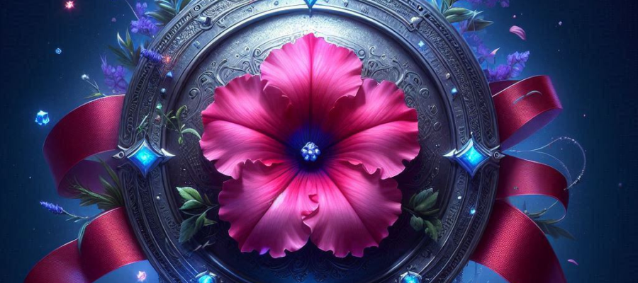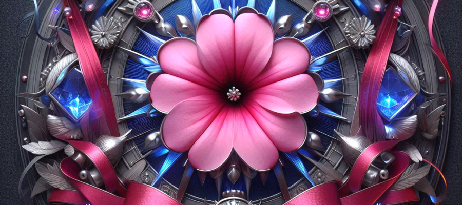 corazones que resplandecen, entre cintas azules y perlas plateadas, ambiente y luces y reflejos, emergiendo en un ritual nocturno.